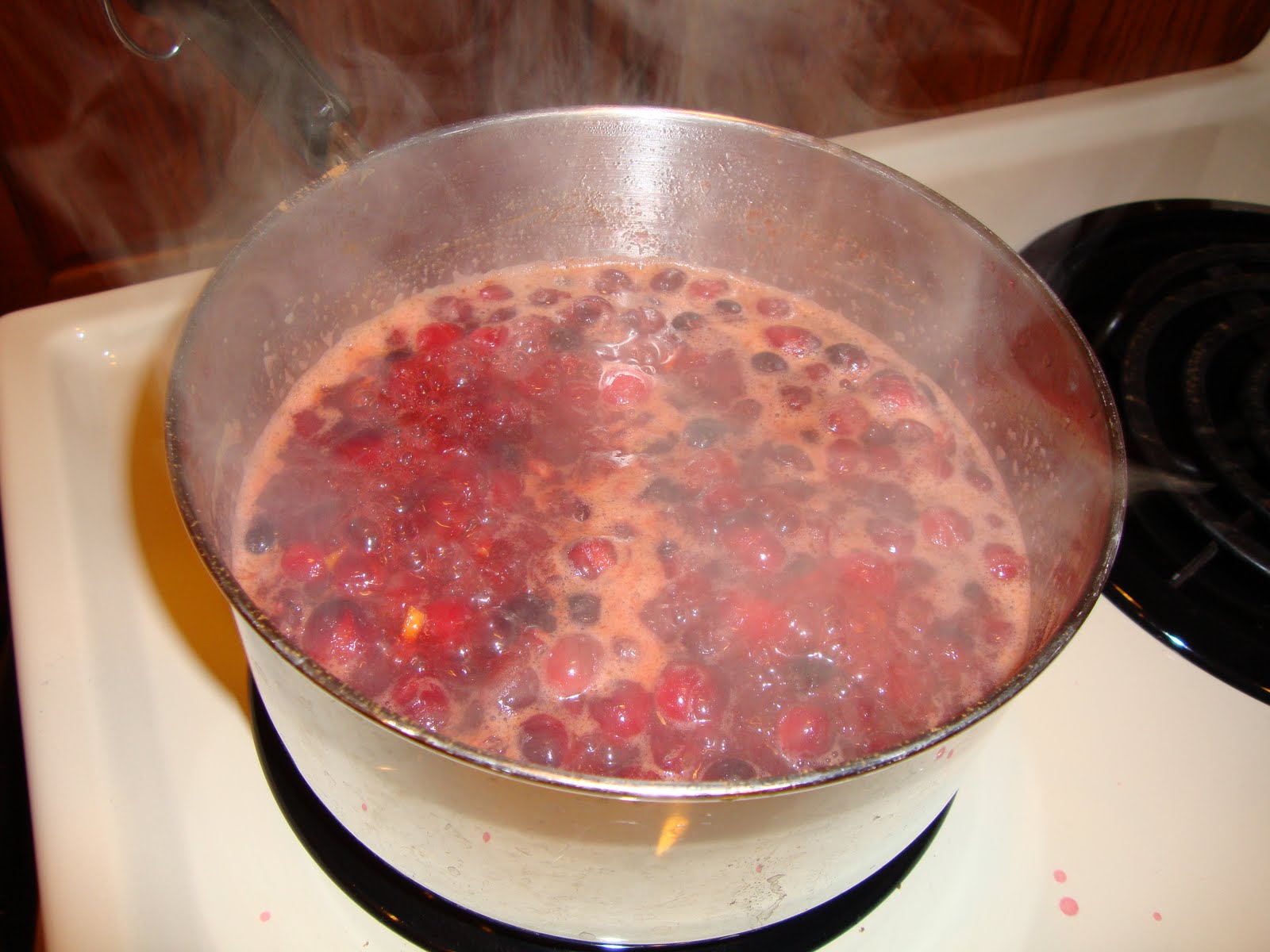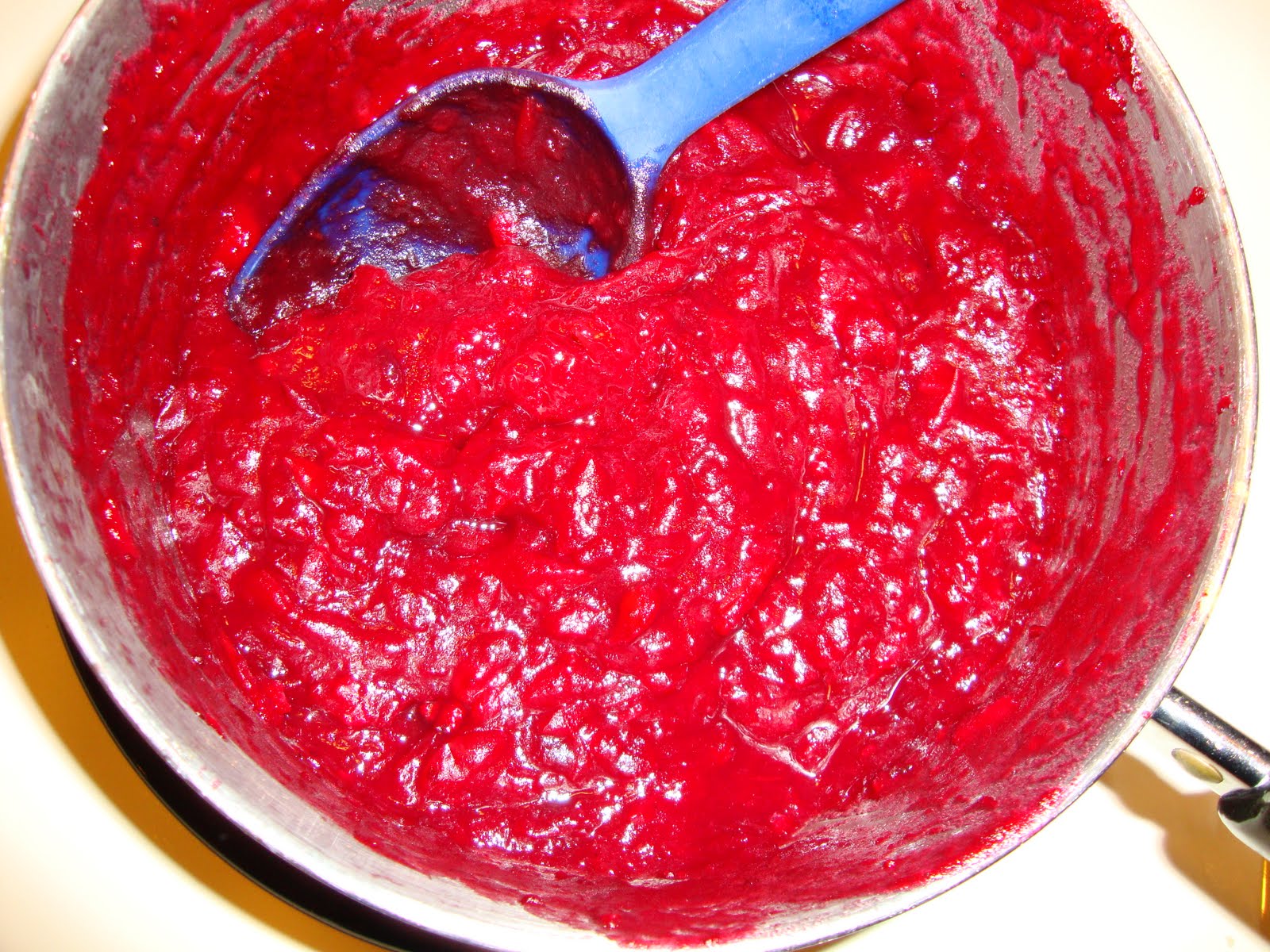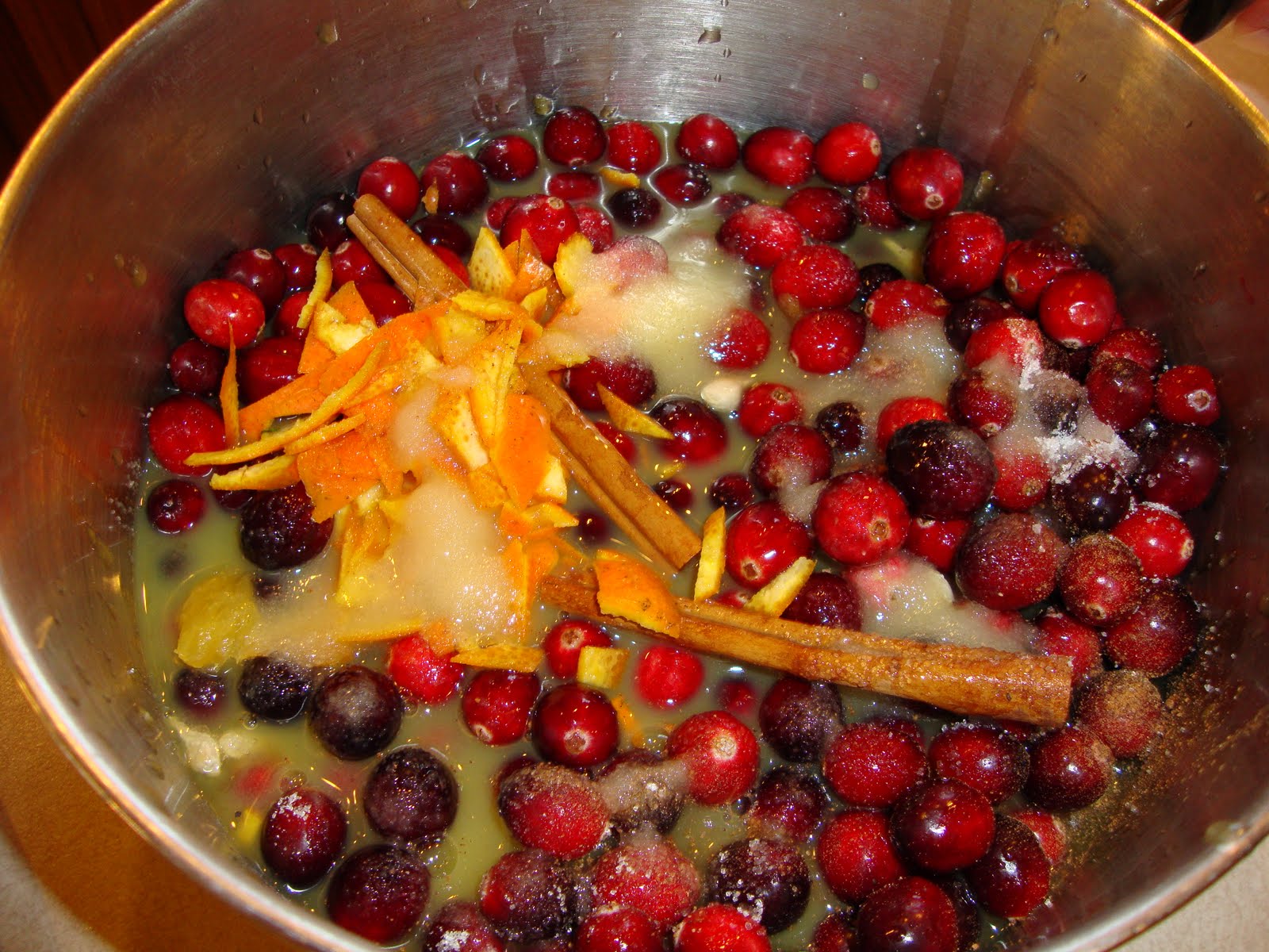 Last thanksgiving my Uncle was in town and he gave me a HUGE hand in the kitchen. We were expecting 22 guests from my side of the family. One of the recipes he made was this cranberry sauce.