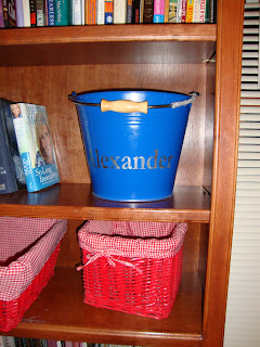 I love the idea, I use buckets in my kids rooms as well. I found some really nice buckets at Hobby Lobby, in the kids section.