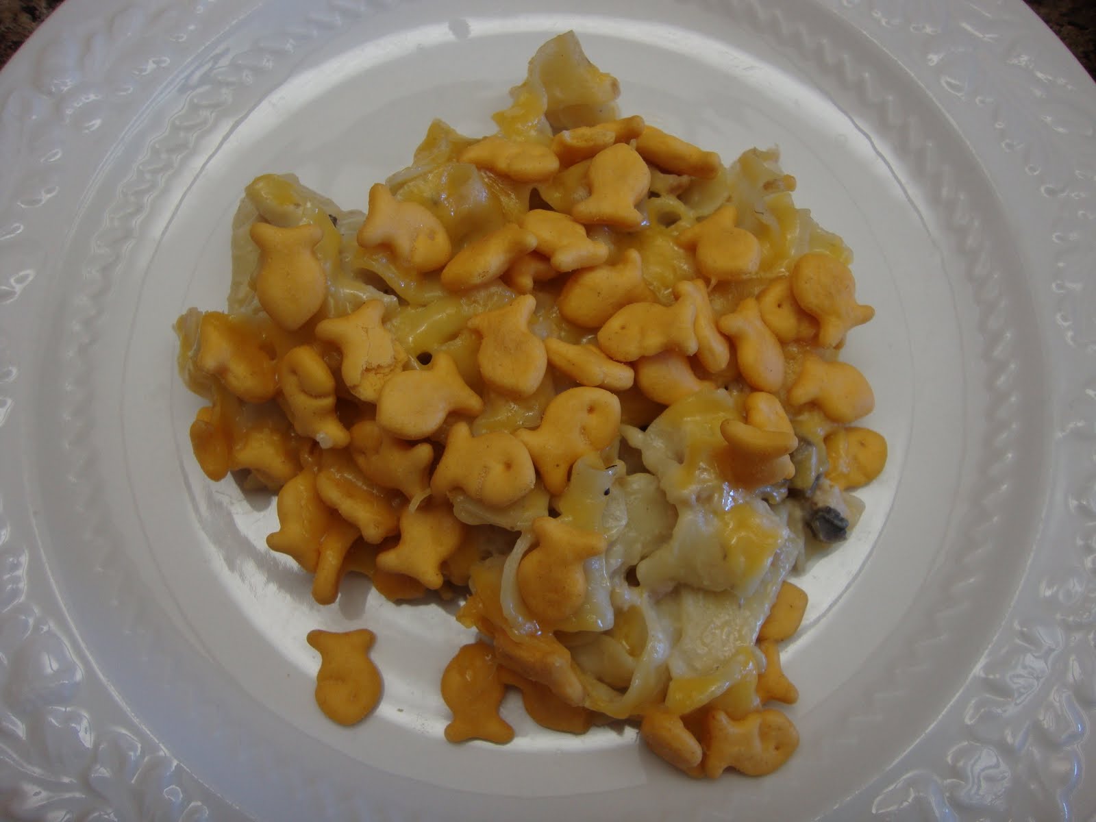 Tuna Noodle Casserole with Goldfish Crackers