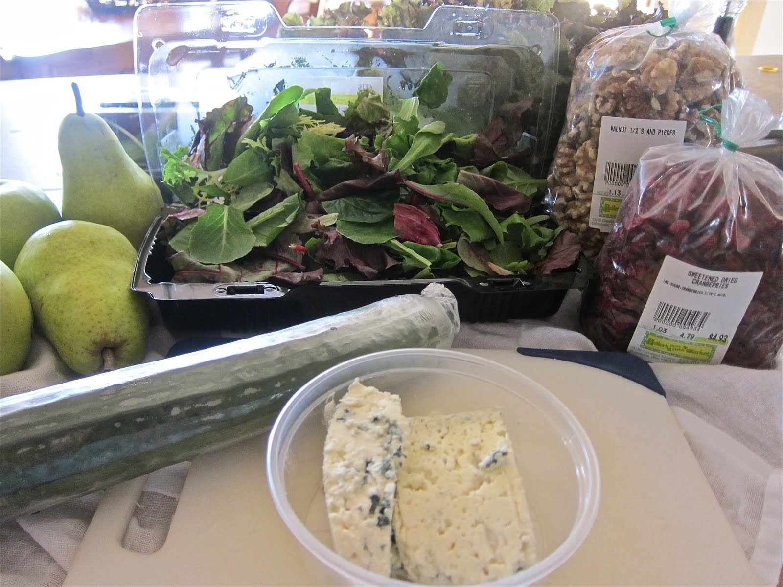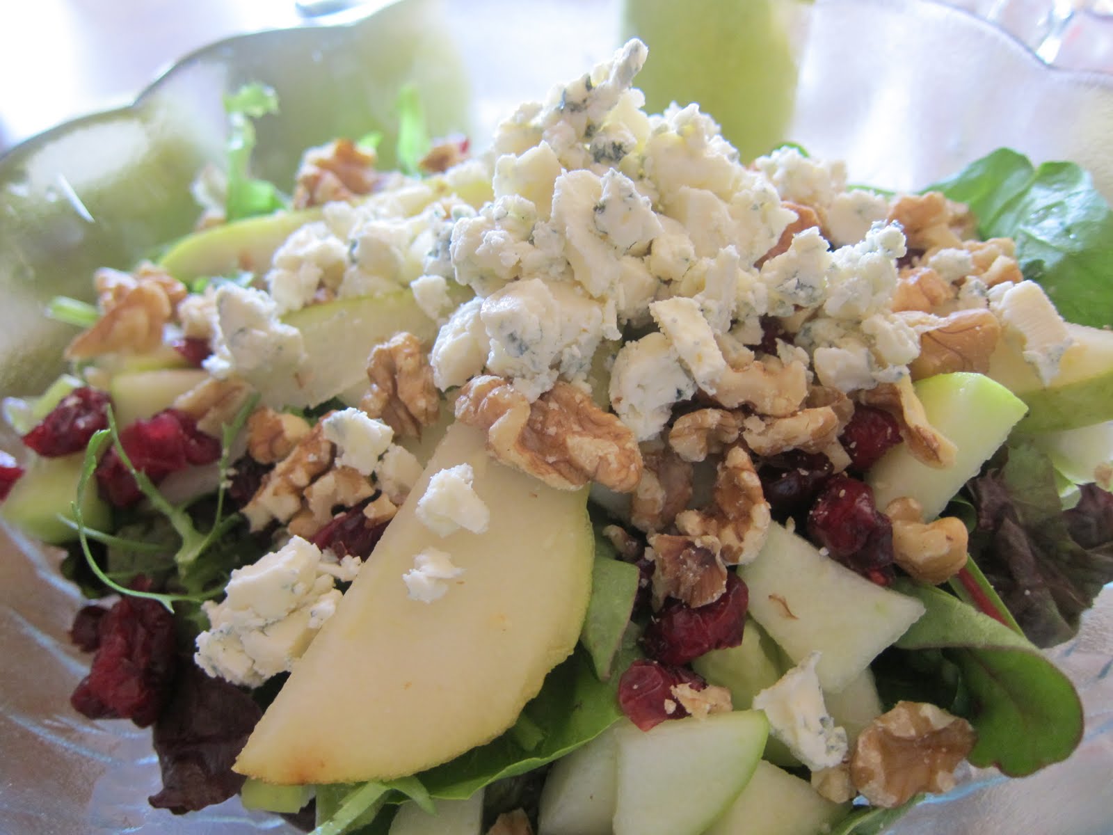 great meal! I love the combination of blu cheese, waltnuts, and pear!
