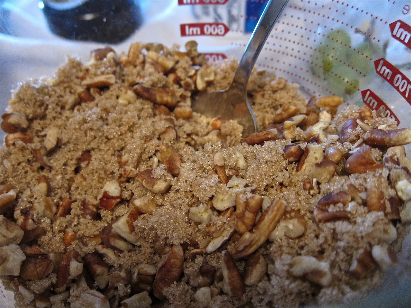 Place over top of grapes (you may also place on the side if you desire) Note: While I was at the store, I looked at the calories on the 1/2 Splenda 1/2 brown sugar box and regular brown sugar has less calories.