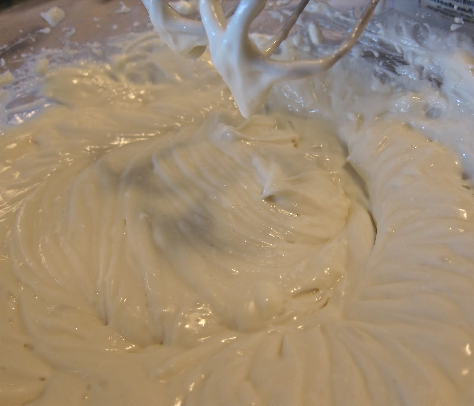 In a medium bowl add cream cheese, sour cream, white sugar, and vanilla