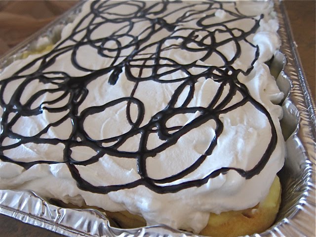 Spread whipped cream over pudding mixture (You may use cool whip as a short cut, if you desire- I am all for it)