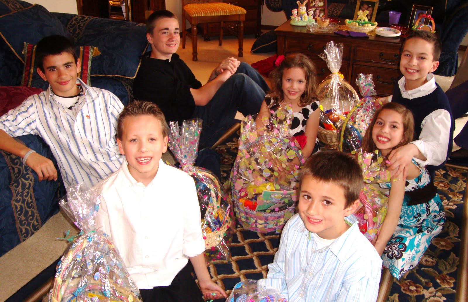 | All the cousins getting their baskets from Grandma and Grandpa! |