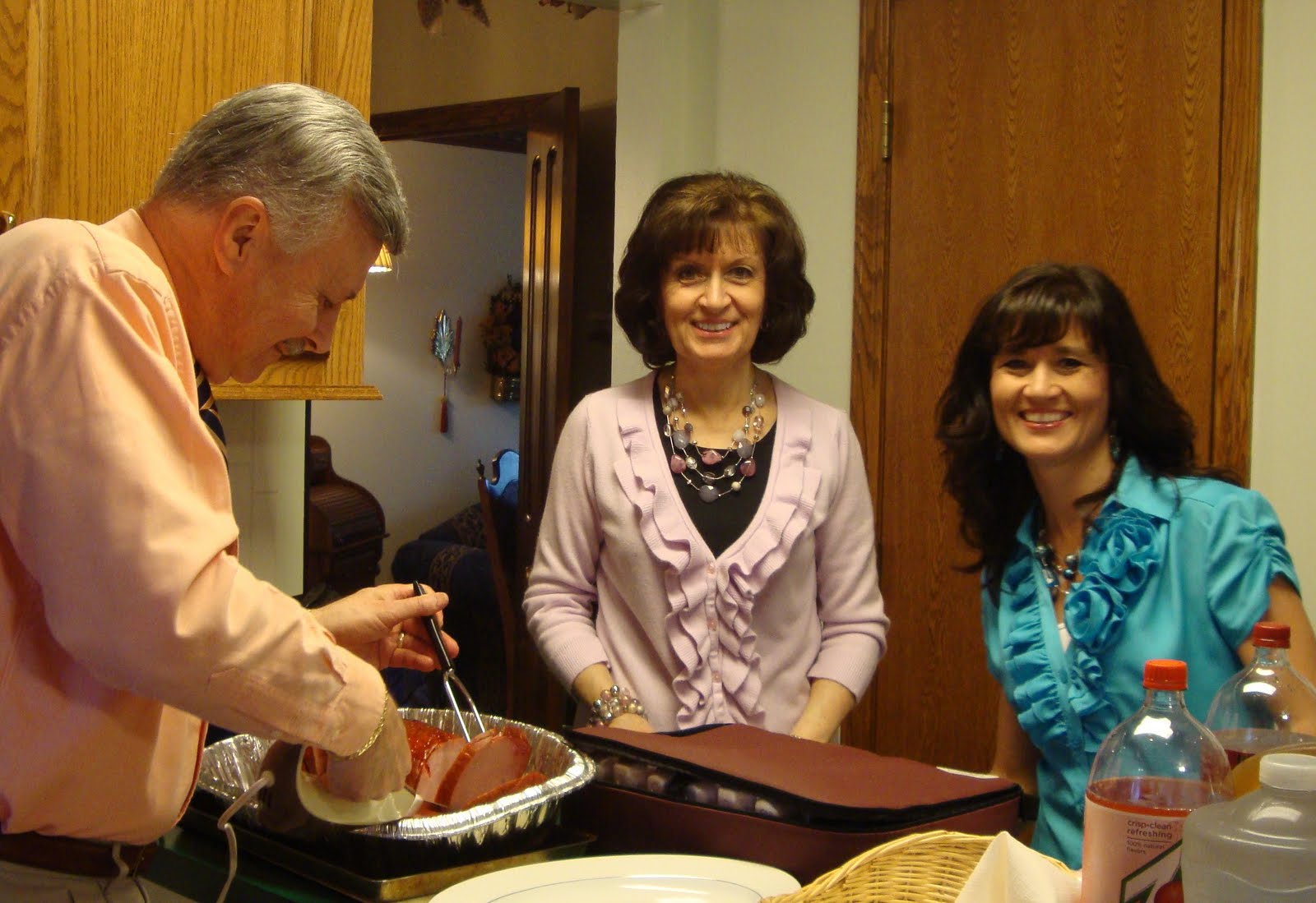 | It’s a tradition to have Dad carving the Ham and all the girls yapping in the kitchen! |