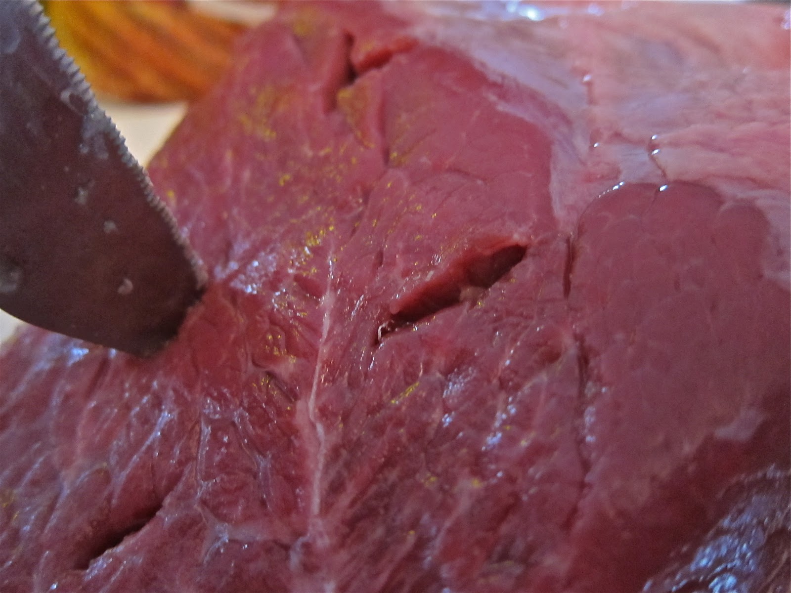 | With a sharp knife cut slices into the meat (about an inch through) |