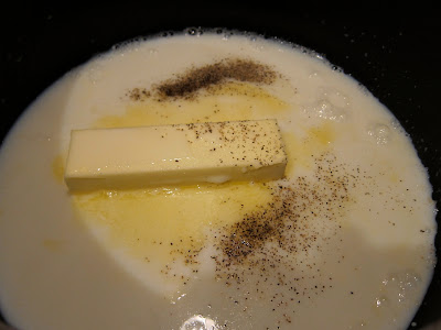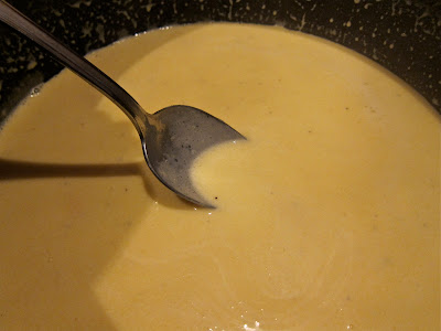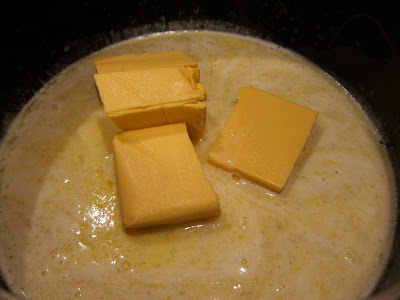 Add macaroni into pot with cheese sauce and stir (it will seem runny, but it thickens as it bakes)