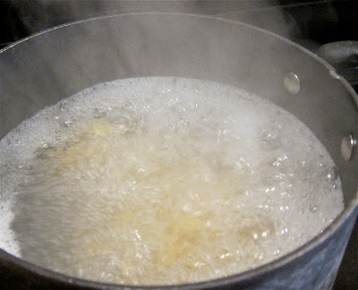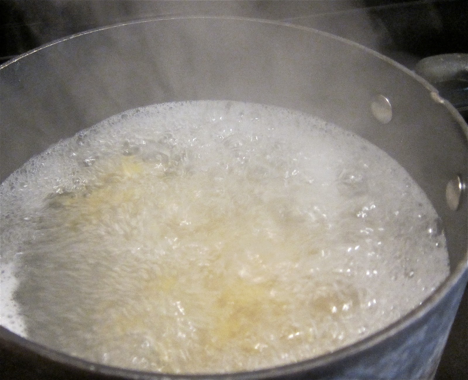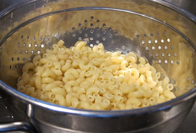 In boiling water, add 2 cups of dry macaroni and cook until al dente (soft/firm- not mushy)