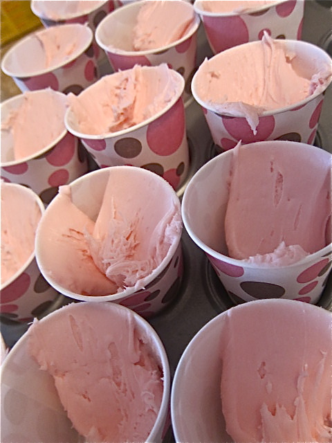 Individual cups filled with frosting for the children to frost their own cupcakes